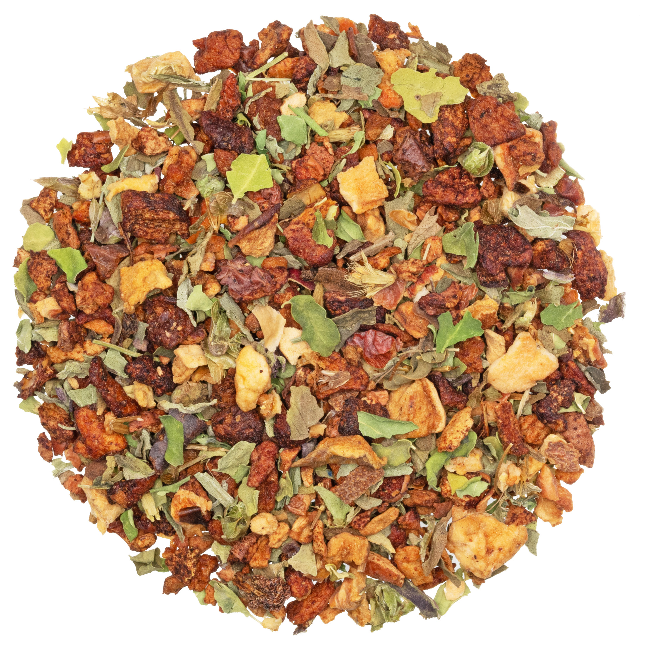 Apfelstücke (Säuerungsmittel: Zitronensäure), Basilikum(15%), Moringablätter, Süßkraut, natürliches Aroma, Zitronenschalen(4%)
