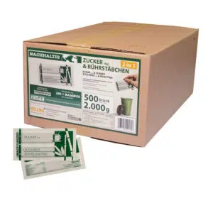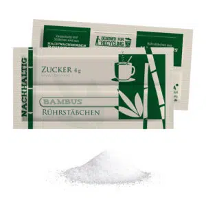 Zucker und Rührstäbchen aus Bambus im nachhaltigen Set 500 Stück x 4 g für 18,99 € |