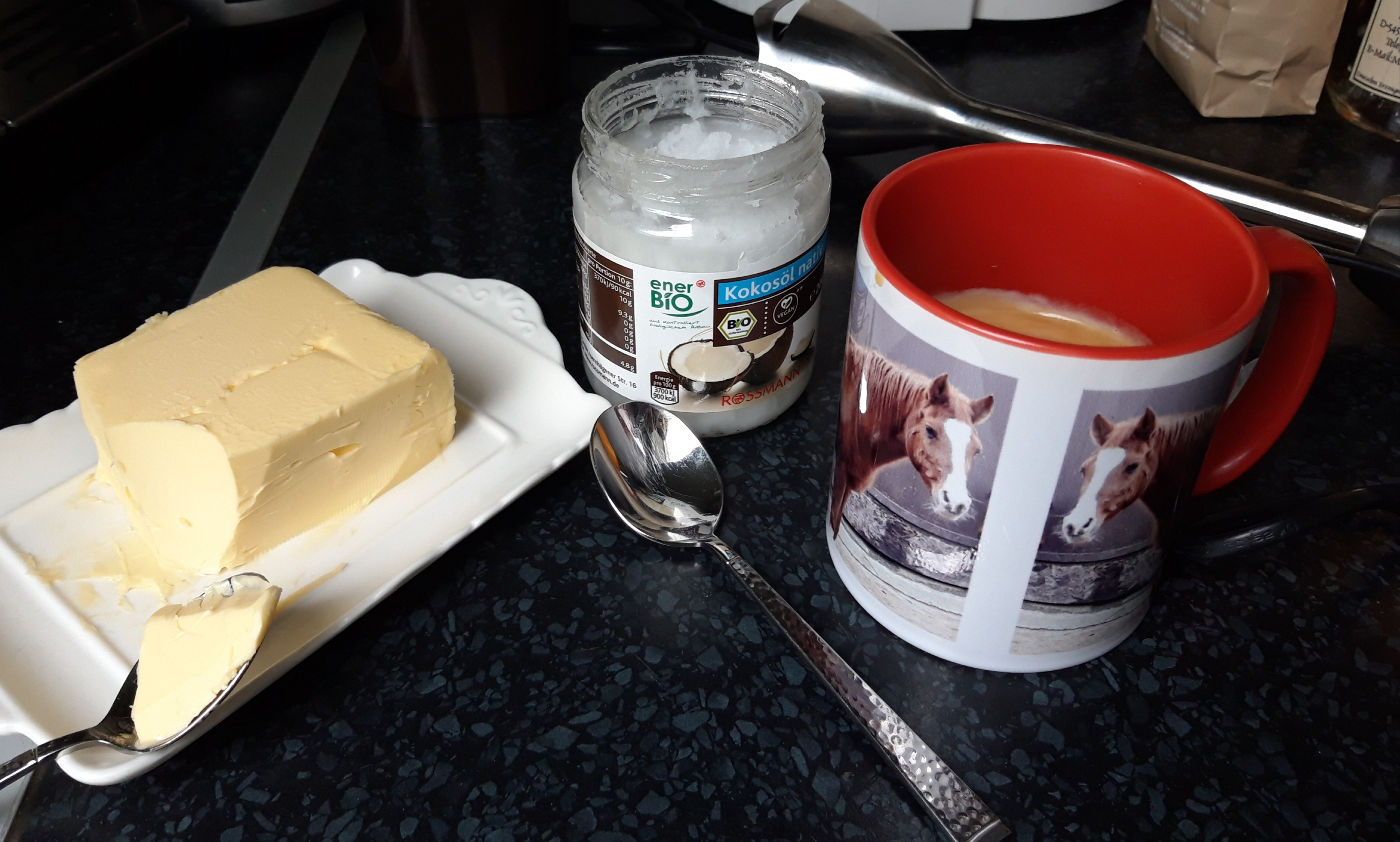 Zutaten für einen Bulletproof Coffee: