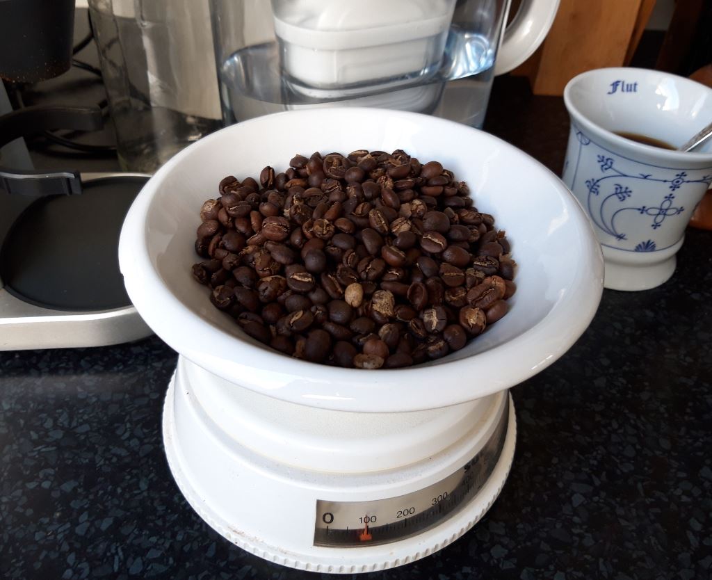 100 Gramm mittelgrob gemahlenen Kaffee hier: mittelstark gerösteter Kenia Nyeri Projektkaffee24 Stunden Zeit