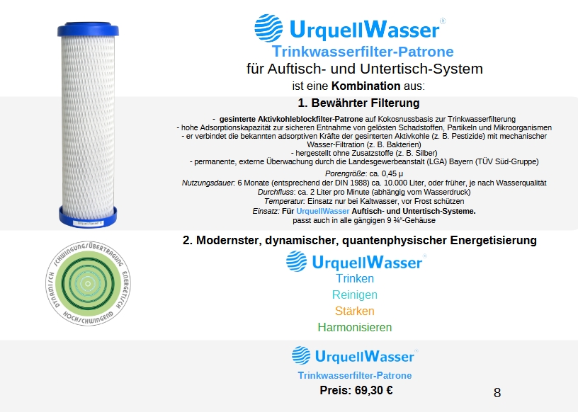 Dann werden in einer zweiten Stufe mögliche Schadstoffe aus dem Wasser entfernt, wie Rückstände von Medikamenten oder Pestizide. Dies passiert durch den Aktivkohlefilter. Hergestellt wird der Filter in Deutschland.