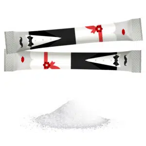 Sie erhalten mit Ihrer Bestellung 100 einzeln hygienisch verpackte Portionszucker-Sticks.
